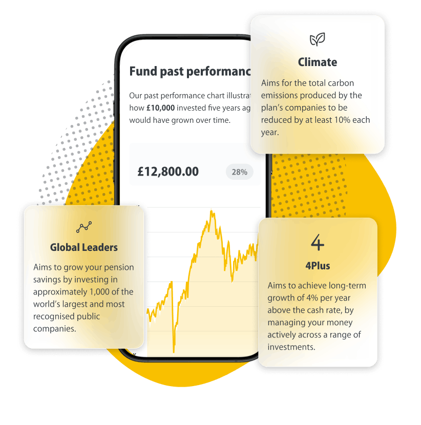 If you’re not sure which to choose, we'll automatically invest you in one of our two default options; our Global Leaders Plan if you’re under 50 or our 4Plus Plan if you’re 50 or over.